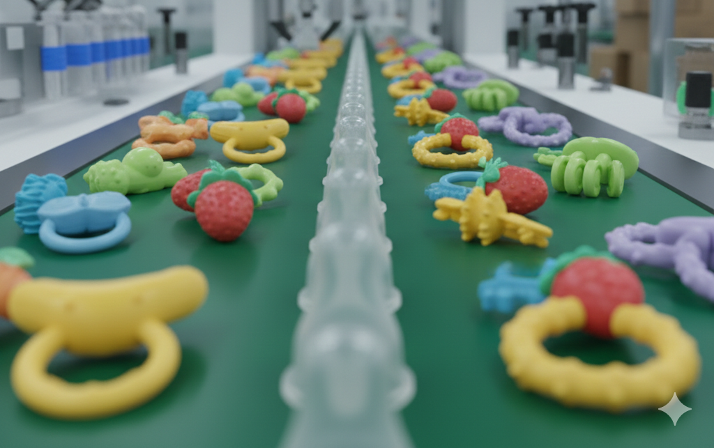 Essential newborn accessories include pacifiers, teethers, bottle cleaning brushes, silicone toothbrushes, sippy cups, and caps or hoods for warmth. These products support feeding, hygiene, comfort, and daily care.